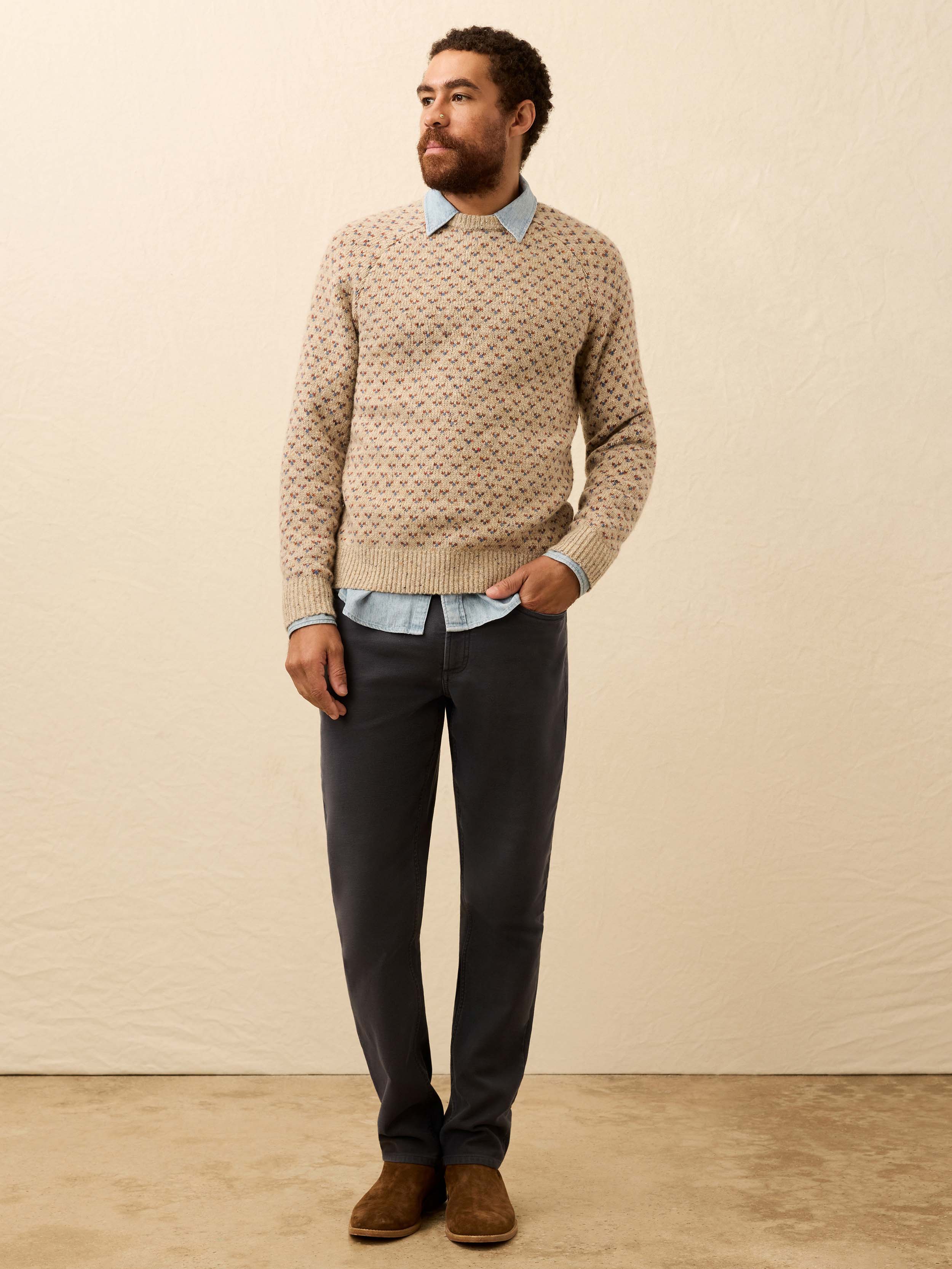 Donegal Crew Sweater - Oat Birdseye Marl