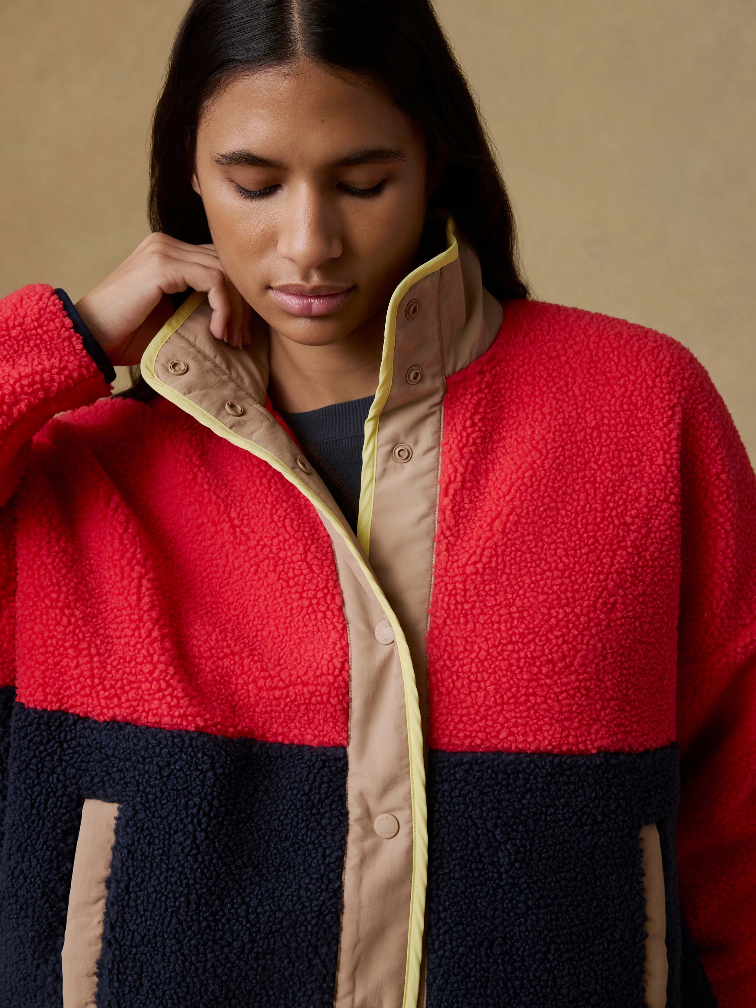 There's nothing better in the cooler months than a warm, easy-wearing fleece. Ours are crafted from 100% recycled materials for an unbelievably soft, yet rugged feel. In a chic color block inspired by vintage apres-ski vibes, this outdoorsy essential keeps you insulated from the elements without sacrificing on style.