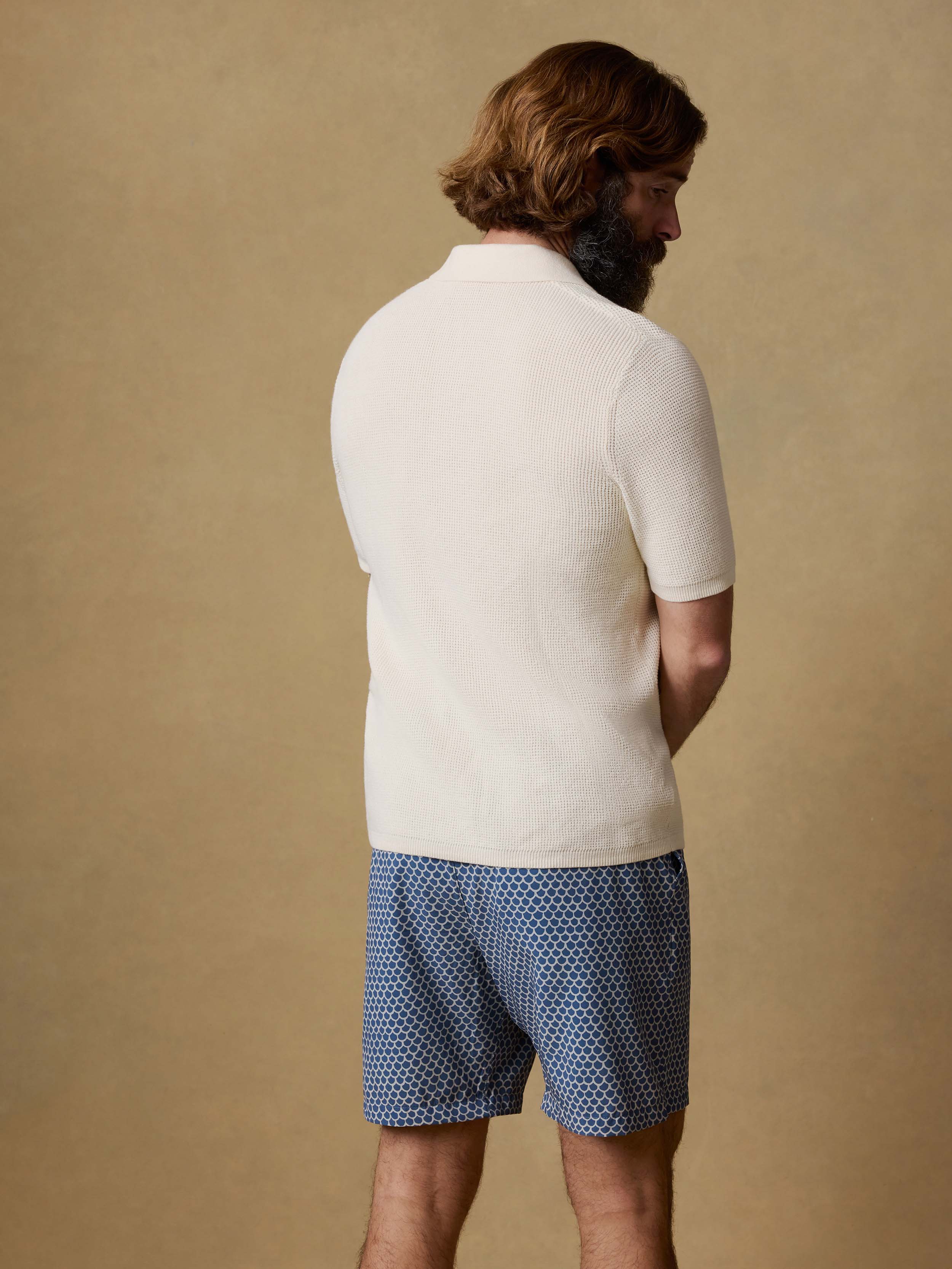 Short-Sleeve Sunwashed Sweater Polo - White Shell