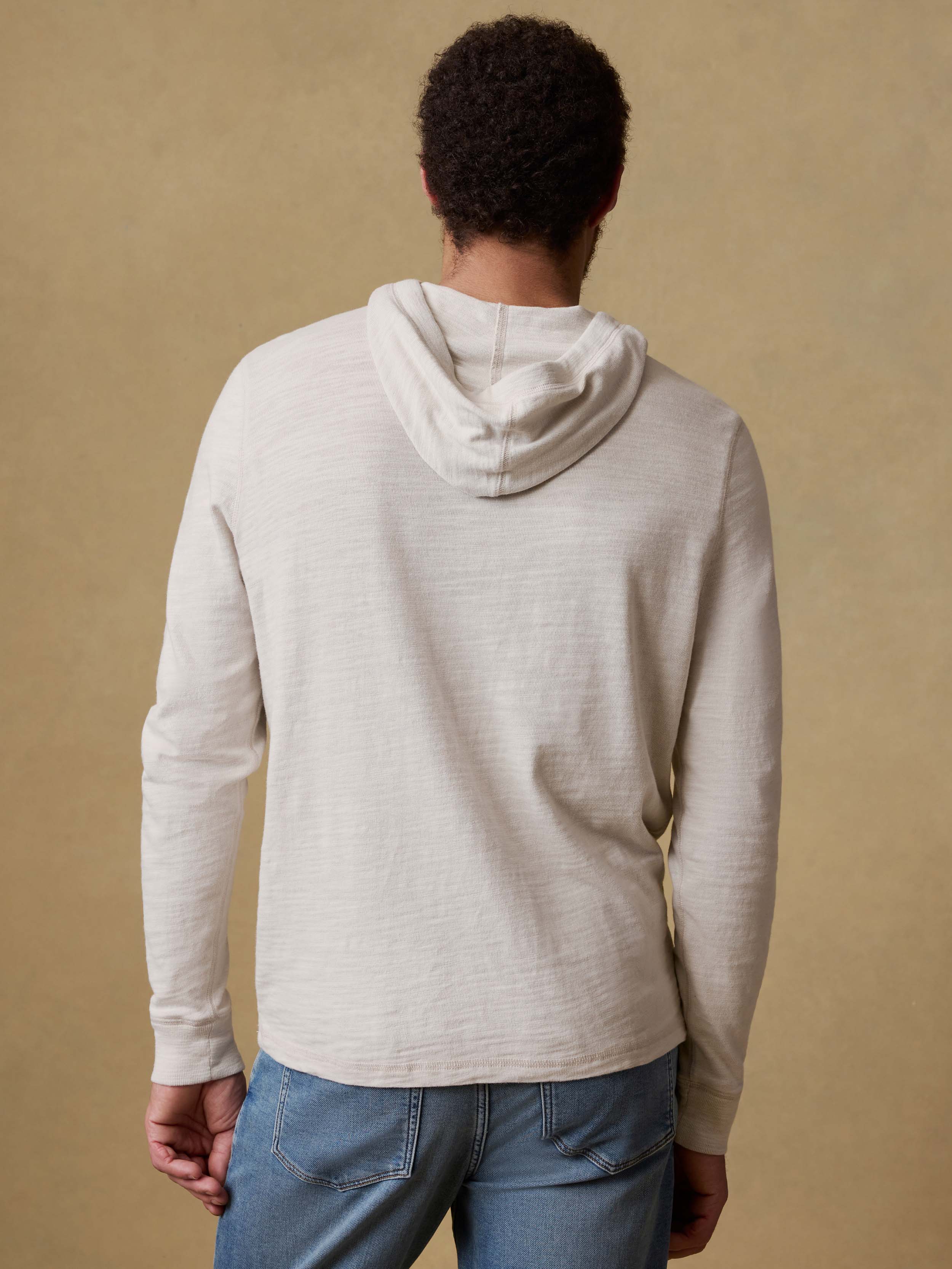Our slub knit fabric is crafted from high-quality cotton and combed for exceptional texture and softness. The perfect layer, this hoodie does all the work of a sweatshirt — featuring a classic relaxed fit, knit ribbing at the collar, cuffs, and hem, and cinchable hood — without the added weight. Get one, and feel what we're talking about.